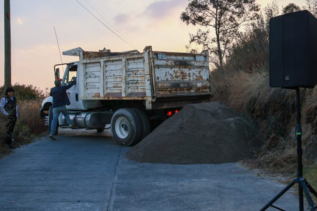 En Loma de San Miguel, perteneciente al pueblo de San Miguel Hila, puso en manos de sus habitantes, cemento, grava y arena, que les serán útiles para terminar la pavimentación de la calle Benito Juárez, con lo que tendrán una vialidad más transitable y segura.