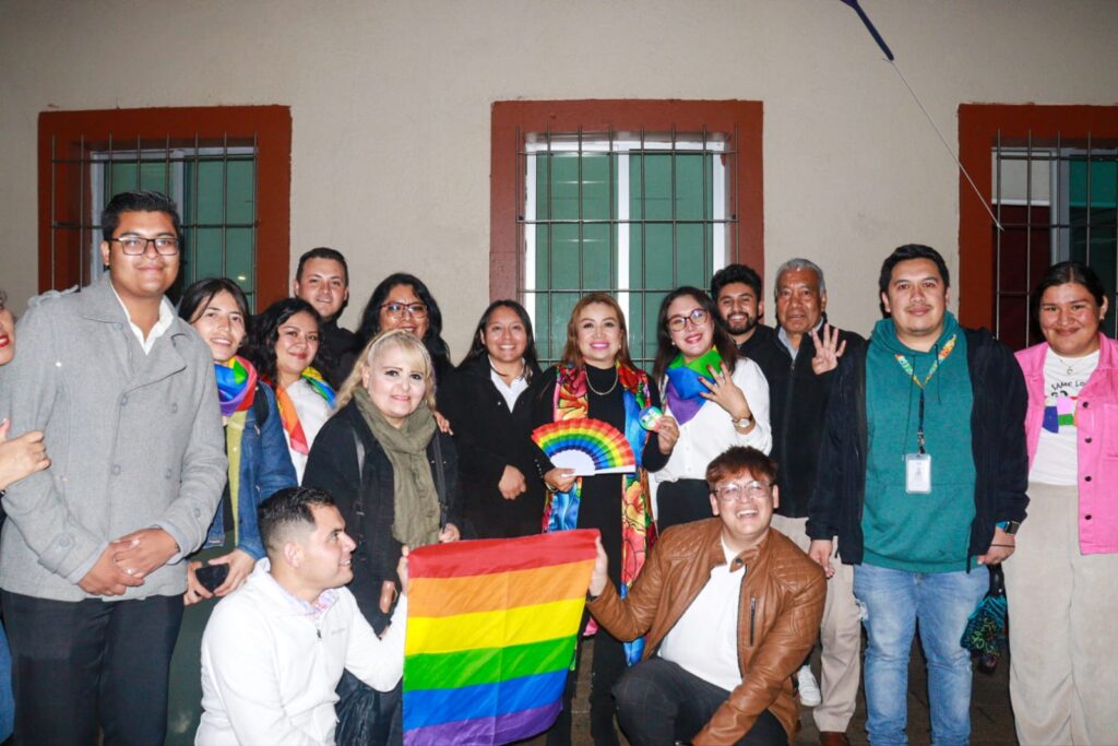 Al realizarse el encendido de luces y despliegue de banderas arcoíris en Palacio Municipal como símbolo de la lucha contra la discriminación y a favor de un municipio más justo para todas las identidades, la Edil afirmó que su gobierno se caracteriza por ser inclusivo, brindando espacios de participación a la comunidad LGBT.