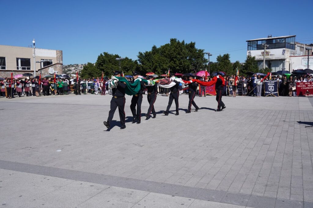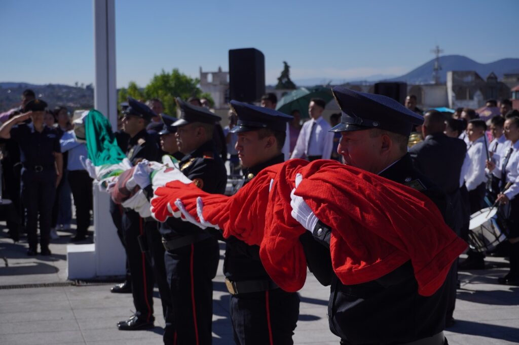 En su intervención, Horacio Muñoz Durán, representante del titular de la Secretaría de Educación, Ciencia, Tecnología e Innovación, Miguel Ángel Hernández Espejel, señaló que “la bandera es el símbolo más alto de nuestra identidad, historia y soberanía, misma que representa también la lucha de los ideales que nos han formado como nación. La educación es la base para formar ciudadanos con amor a su patria, puntualizó.