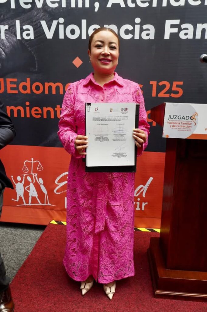 En representación de la Gobernadora mexiquense, Karina Labastida Sotelo, Directora General del DIFEM, señaló que este evento representa mucho más que la firma de un convenio, ya que simboliza el compromiso de enfrentar la violencia familiar y de género.