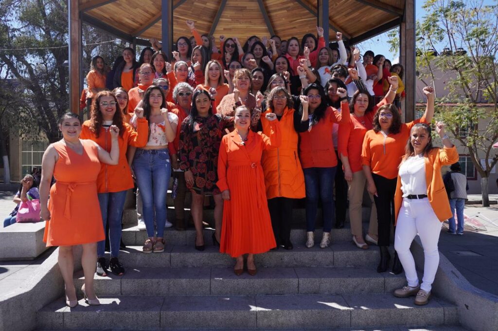 En dicha actividad, la edil y servidoras públicas adscritas a las distintas áreas de la actual administración, se concentraron en el kiosco del Centro Histórico San Pedro Azcapotzaltongo, donde refrendaron el compromiso de este gobierno de acción que transforma, con los derechos de la mujer y contra la violencia de género.