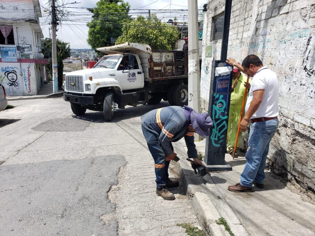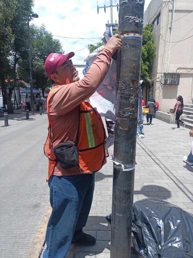 NICOLÁS ROMERO.- Con el objetivo de contribuir a mejorar la imagen urbana y de combatir la contaminación visual, el Gobierno de la Alcaldesa, Yoselin Mendoza, intensifica el retiro de casetas telefónicas inservibles y propaganda en la vía pública.