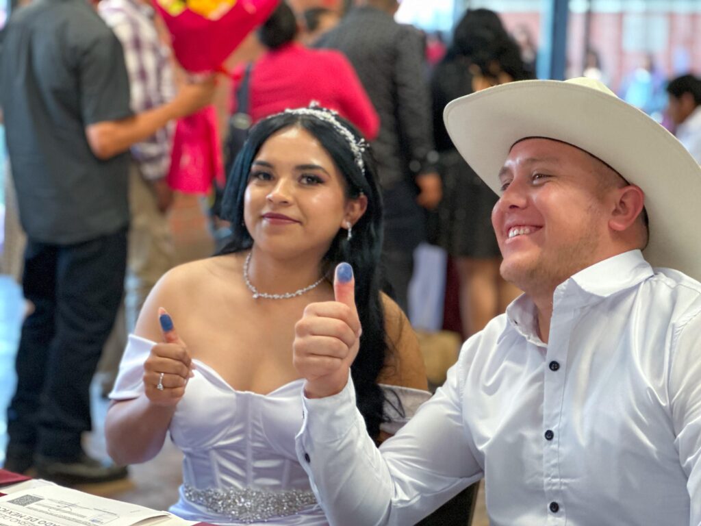 Cabe mencionar, que las parejas que se casaron fueron beneficiadas con la condonación del pago de derechos (cuyo costo regular es de 2035 pesos en oficina y 3056 a domicilio), además de que se les eximió de pagar actas de nacimiento a quienes no contaban con ellas, al igual que constancias de identidad para quienes las necesitaban.
